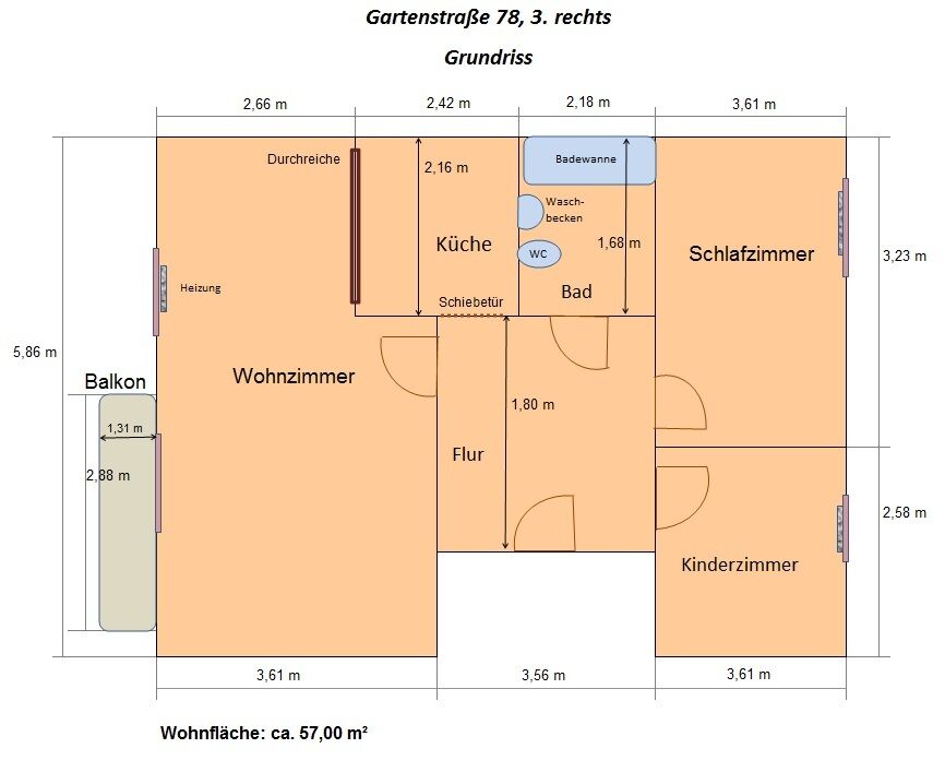 Die Wohnung befindet sich in der 2. Etage eines Mehrfamilienhauses und liegt direkt im Grünen. Sie wurde bereits saniert und der große Balkon lädt zum Verweilen ein. Das Badezimmer ist innenliegend und verfügt über eine Badewanne.